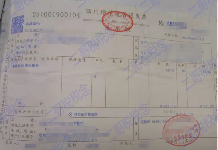 增值稅專用發(fā)票的餐飲服務(wù)(極少見)