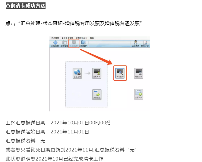 此狀態(tài)說明您2021年10月已經(jīng)完成清卡工作