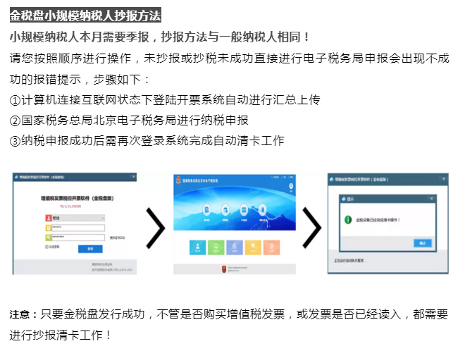 (注意:此流程為小規(guī)模季度申報(bào)納稅人的抄報(bào)流程)
